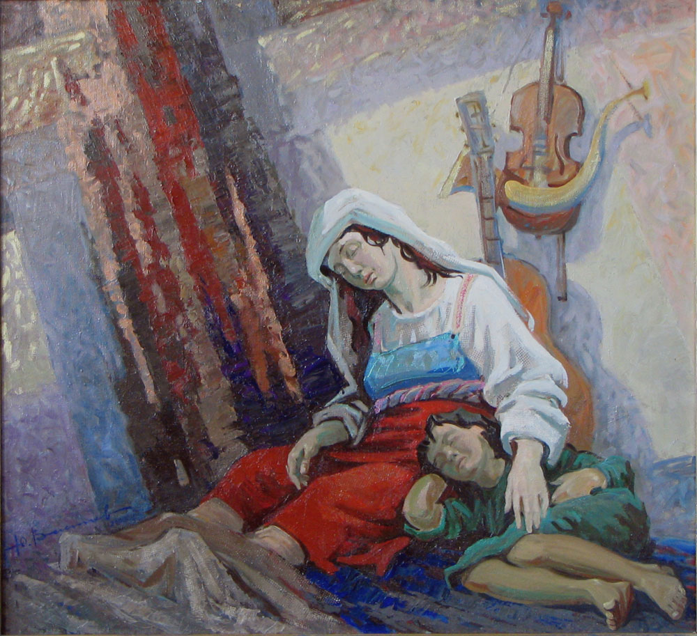 The blak curant Sonya riding a donkey Suterday evening In the garden Golden fishes Sofia Pond in Temnikov Monastery yard Rest in the Fild Kittens Garden in the village of Terpigorev Winter Horses in the Garden. Evening in Terpigorevo village The rain in Kizhi Kizhi Island Bell tower of the Transfiguration C Autumn in the mountains Gypsy quarter in Chanakal Pskova land Battle  of Achilles and Hector The dispute in Troy The Argonauts Old and Young Streets musikant Kelt Spanish trio Sicilian song Lu sciccareddu Native American rhythms Ivan Kupala Night celebration Parking in La Roshel Old Pinetree in Cartare The Fog in Spanish mauntains Amboise. Loire after flood Cafe-in-Berre-Les-Alpes. Sunshine in Villefranche Morning Beer and snack Blu Steel life The wind Nasturtiums